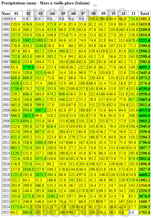 - 2025 : 1 763 mm (sur 11 mois)